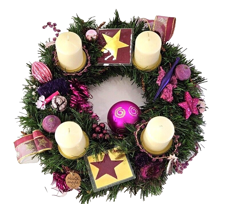Adventskranz Rosa Lila Bourdaux künstliche Kiefer 35 cm Glitzerband Sterne 9065