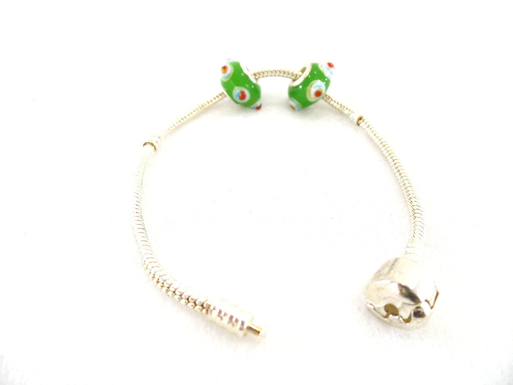 Farbe: Armband silberfarbenOptik, 2 grüne Glasperlen