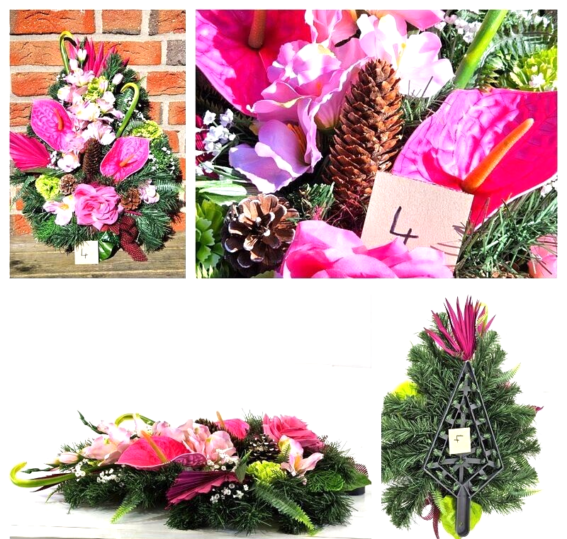 Blumenart: Rosen, Anthurien, Gladiolen, Palm Speer, Nelken