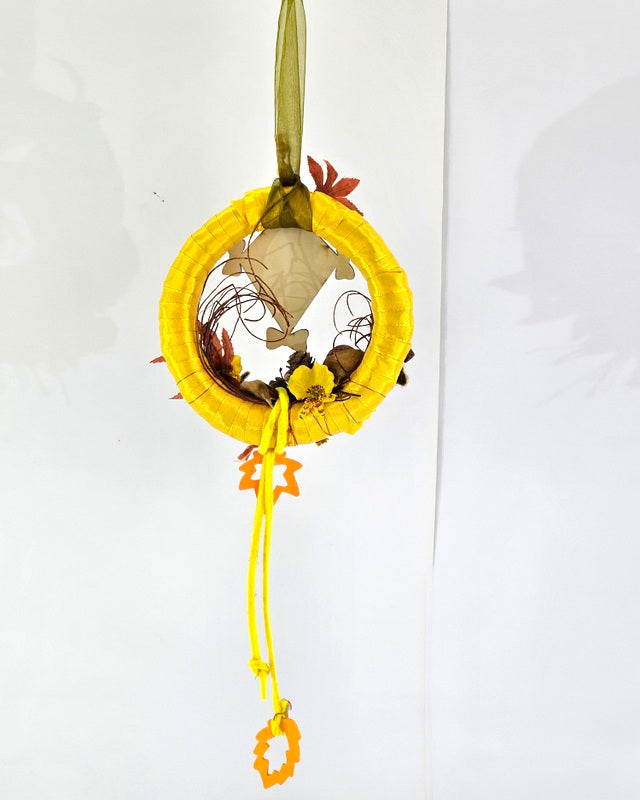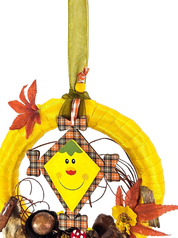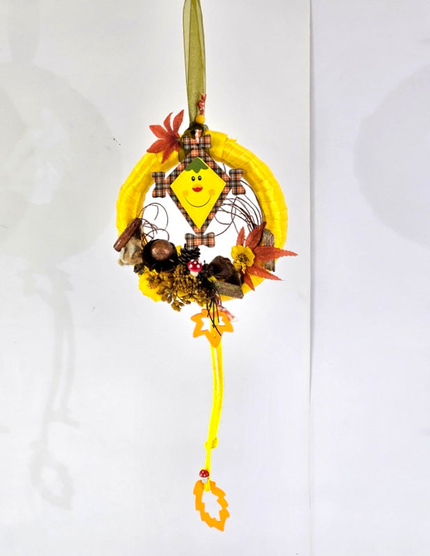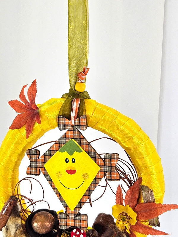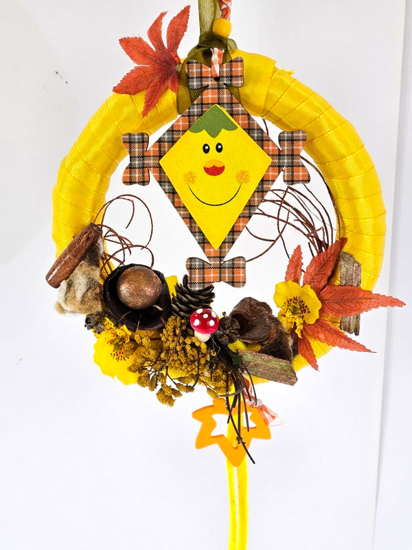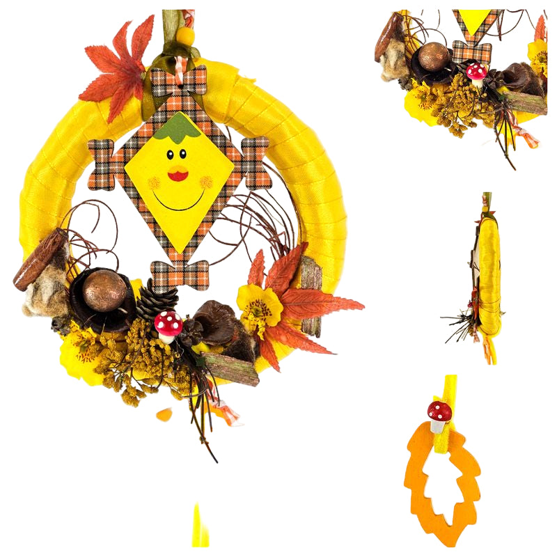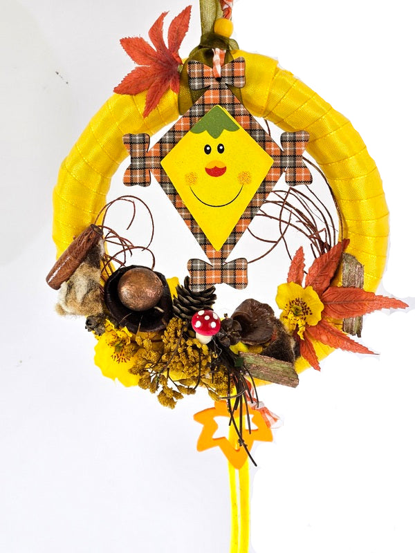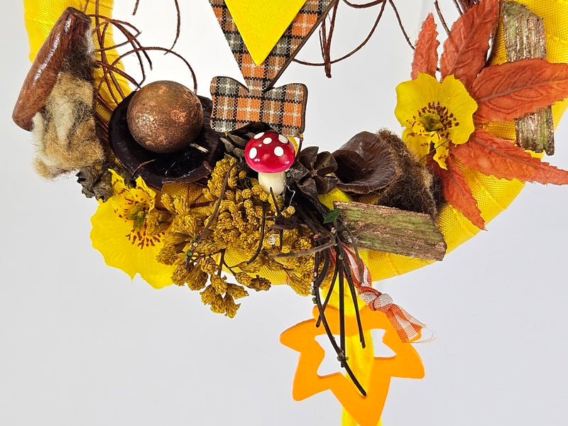 Dekoriert mit Ahornblättern, Schafgarbe, Pilze,