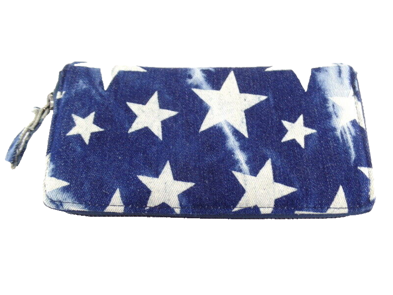 Geldbörse Sternmuster dunkelblau Etui Jeansstoff Querformat Wallet Portmonaie