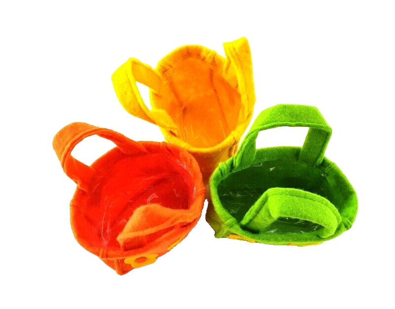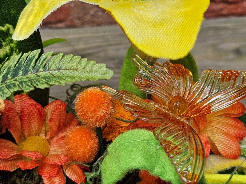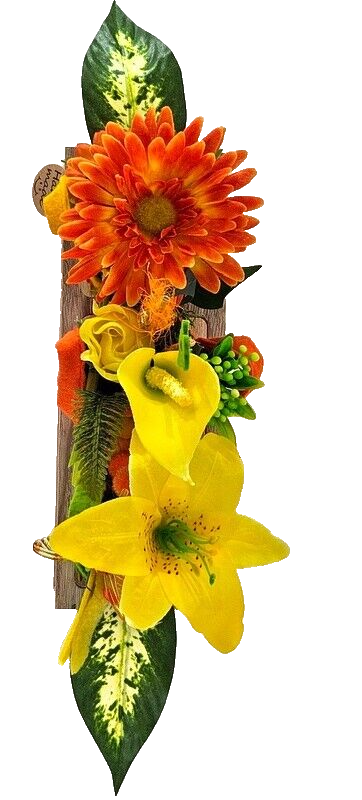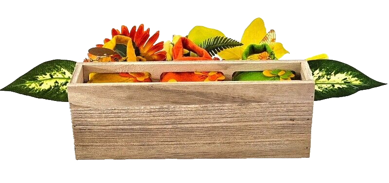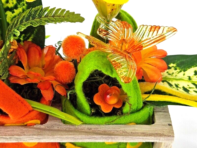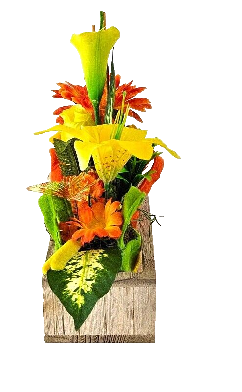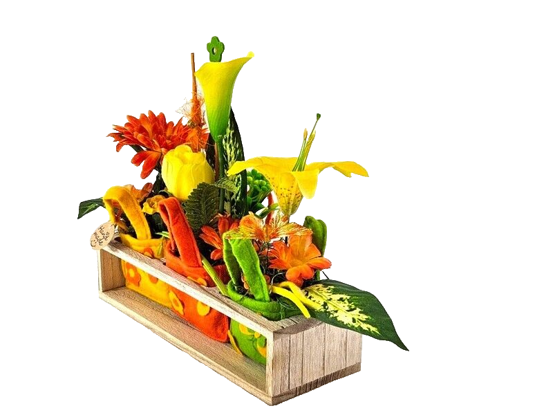 Gestecke 3 Stück in Holzbox Gelb Grün Orange Kunstblumen Filztaschen Dekoration