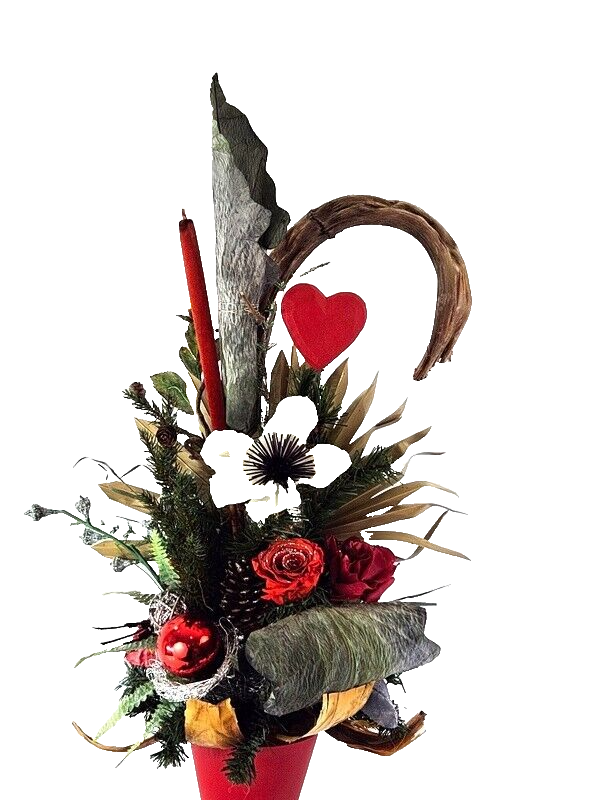 Toller künstlicher Tannenzweig, di cke rote Rosen,