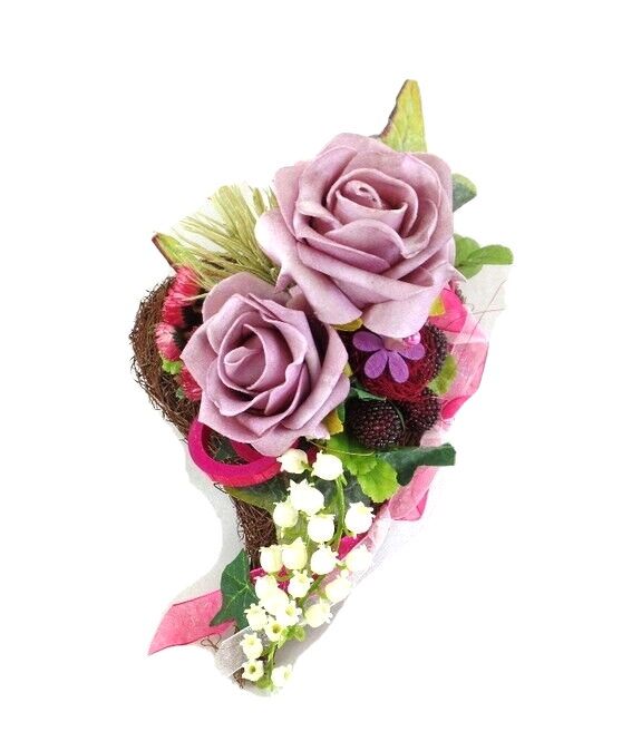 Grabschmuck Herz Reisigesteck Rosa Kunstblumen Natur Beeren Maiglöckchen