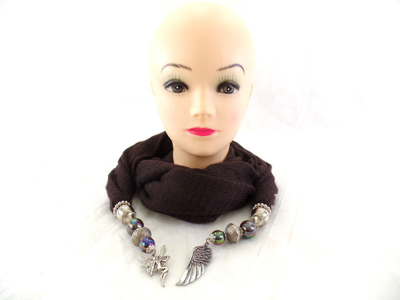 Schal Tuch dunkelbraun Schmuck Anhänger Kugeln Engelflügel Elfe