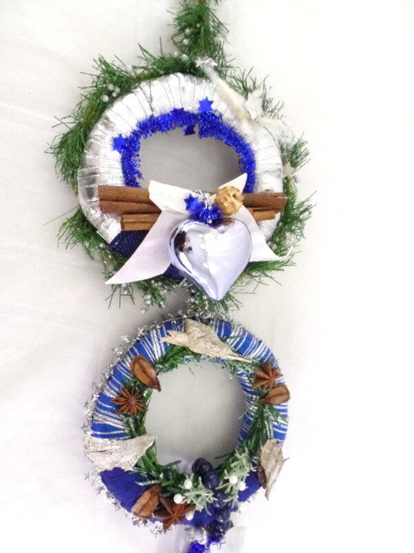 Wandkranz Türkranz Blau Silber Herz Stern künstlich Sterne Tannenbäume Dekoratio